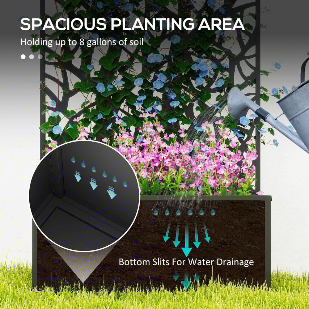 Outsunny Metal Raised Garden Bed with Trellis 24 x 23 x 61cm
