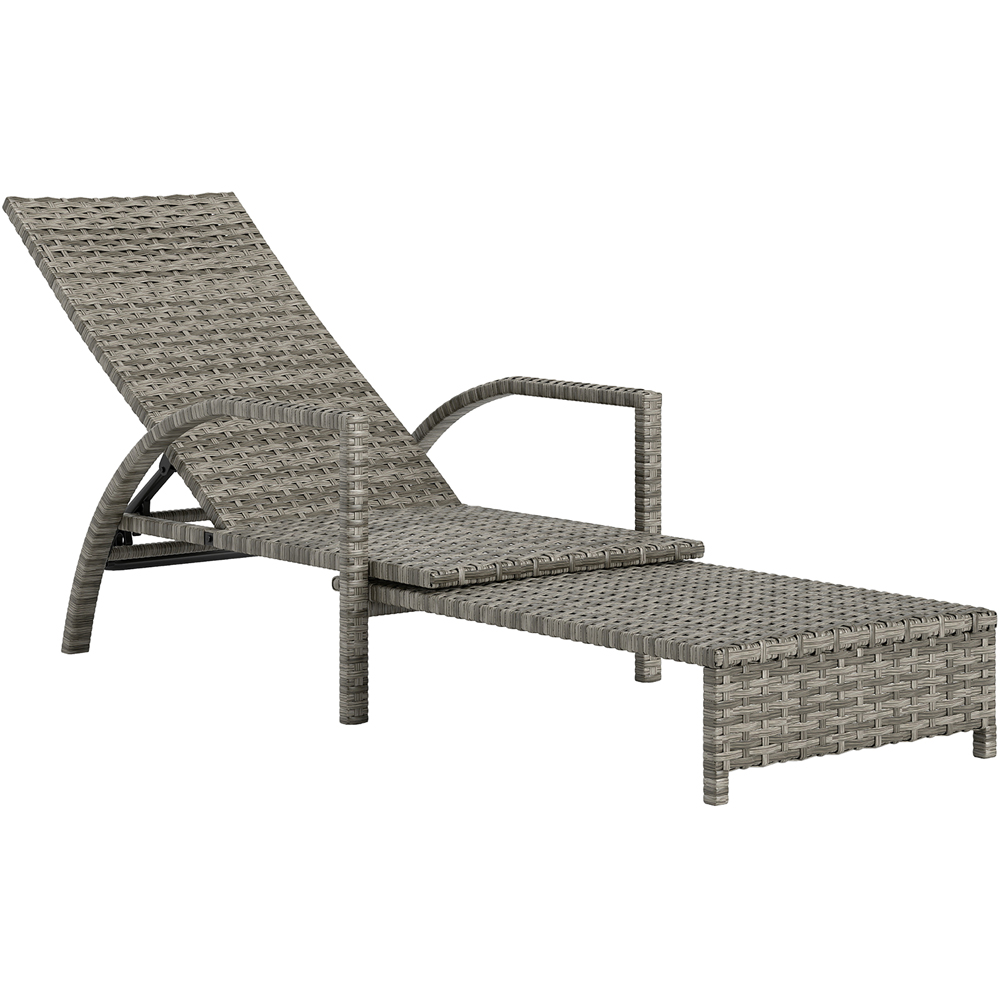 Outsunny Mixed Grey Rattan Sun Lounger with 4 Level Adjustable Backrest and Retractable Footrest