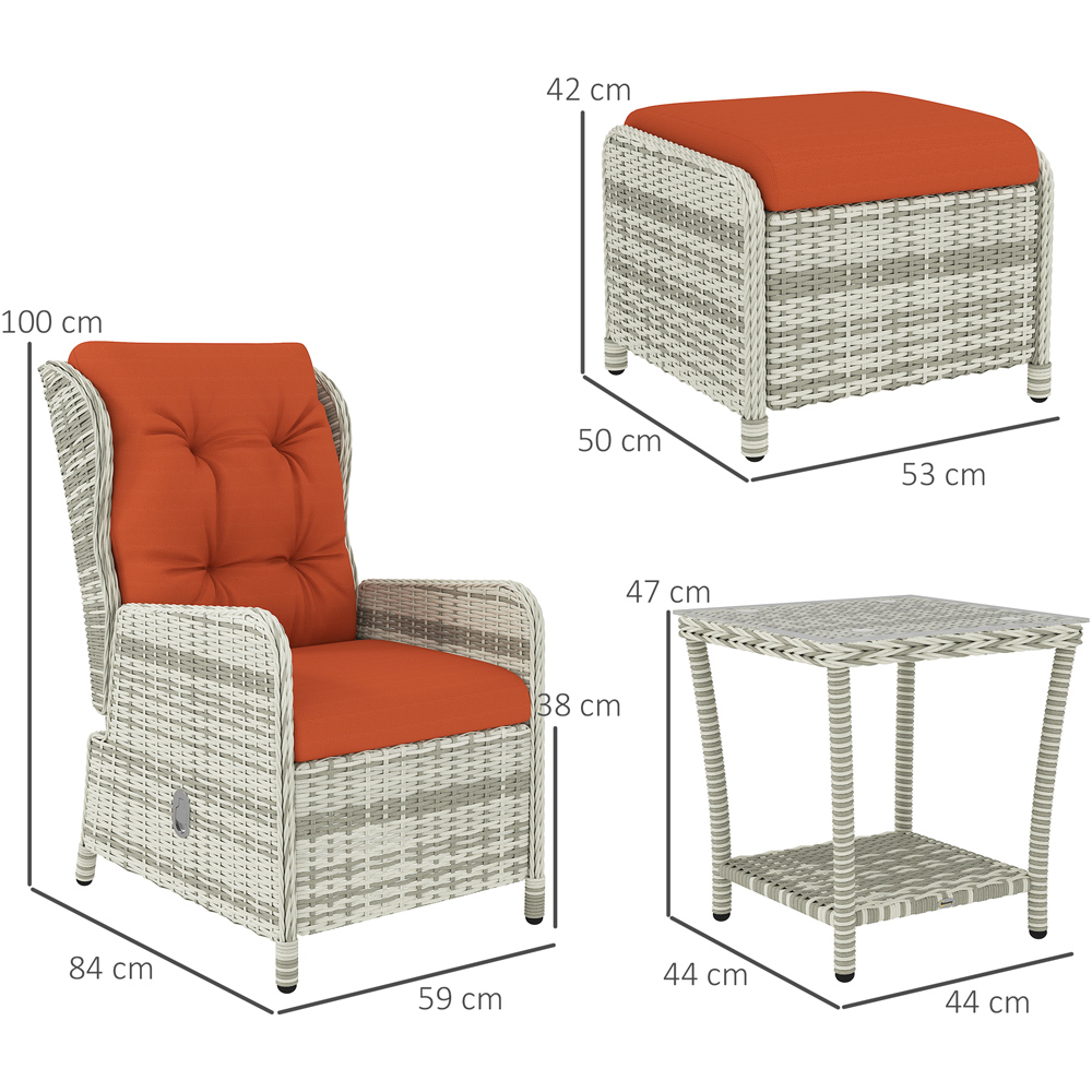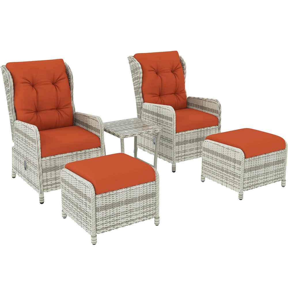 Outsunny Orange 2 Seater PE Rattan Recliner Garden Lounge Set with Footstool