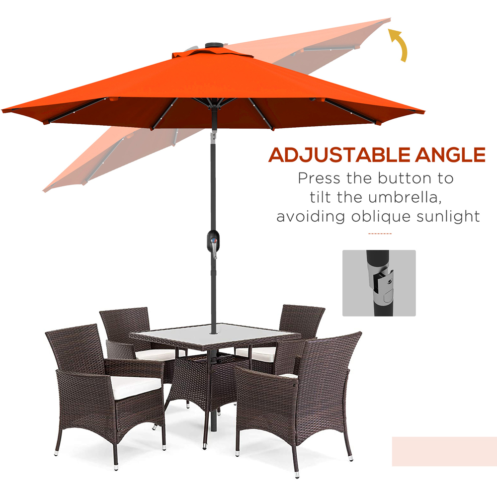 Outsunny Orange 24 LED Crank and Tilt Parasol 2.7m