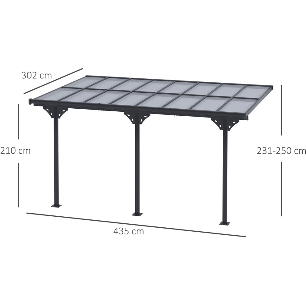 Make a perfect addition to your outdoors and garden with the Outsunny Outdoor Patio Wall-Mounted Gazebo Pergola. The polycarbonate panel roof shields you from direct sunlight and damaging UV rays, while still allowing the warmth and glow through. With thick plastic panels and a polycarbonate roof - it protects the inside from direct sunlight and harsh UV rays for safety in the sun. The height and columns of the metal pergola can be set to a position which is suitable for you. With built-in holes - it prevents water and liquids from building up on the structure of the garden pergola.