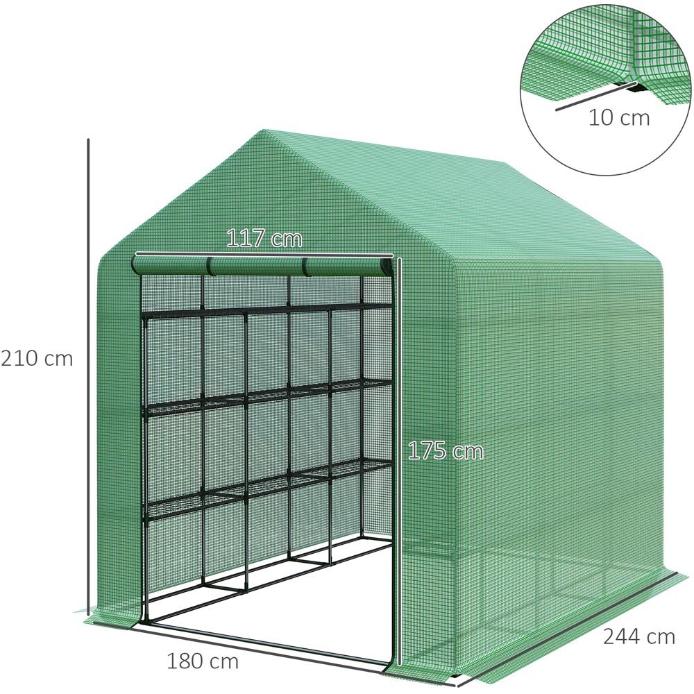 Discover the ultimate solution for year-round plant cultivation with the Outsunny Polytunnel Shelved Greenhouse. Perfect for both hobbyists and serious growers, this greenhouse extends your growing season, allowing for bountiful harvests throughout the year. The fully enclosed UV-protected PE cover creates high humidity, ideal for tropical plants, while still letting in plenty of sunlight. For superior stability, the cover features 10cm extended edges designed for deep burial in the soil. The rust-resistant steel frame ensures years of reliable use, providing a dedicated, protected space to nurture your plants.