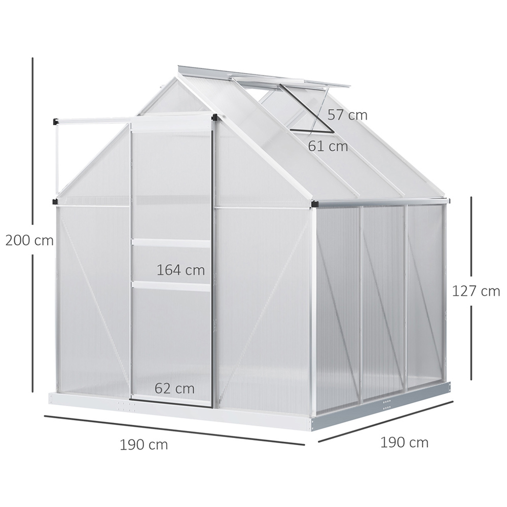 Outsunny Polycarbonate Walk In Greenhouse Kit with Sliding Door 6.2 x 6.56ft