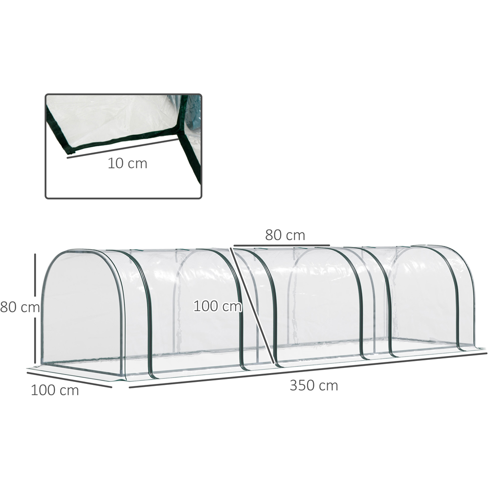 This Outsunny long tunnel greenhouse lets you cultivate plants, vegetables, fruit, and flowers safely throughout the year. The durable cover protects against light rain and wind, while letting in ample sunlight. A strong powder-coated steel frame ensures lasting durability. Available in four sizes to fit various spaces – balconies, patios, gardens, and allotments – choose from a two-section (H80 x W100 x L200cm), a three-section (H80 x W100 x L300/350cm), or a four-section (H80 x W100 x L400cm) model.