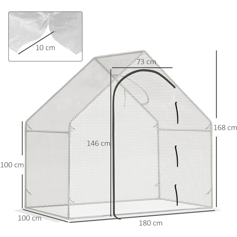 This Outsunny greenhouse lets you cultivate plants, vegetables, and flowers all year round. A powder-coated steel frame ensures strength and durability, resisting rust and corrosion. Its large, fully-opening design provides ample space, complemented by a convenient door for easy access and a window for ventilation. The durable plastic cover protects your plants from light rain and wind, while diffusing harsh sunlight. For extra stability, the cover has a 10cm overlap for burying in the soil.