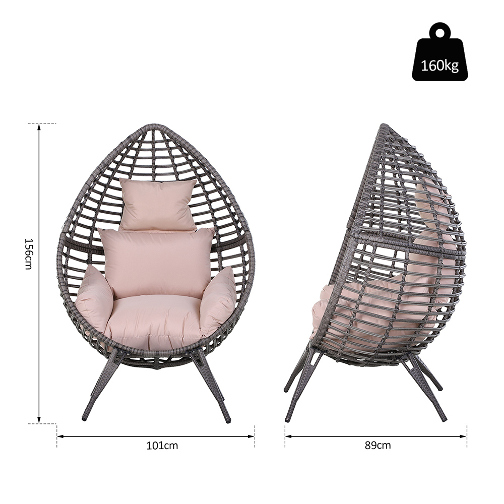 This Outsunny lazy chair offers a tranquil retreat in your garden. Its robust metal frame is shaped into a generous, teardrop design (156 x 101cm), creating a deep, inviting space to escape the hustle and bustle. The hand-woven PE wicker, wrapped meticulously around the metal frame, ensures the chair can withstand typical British weather. Stability is guaranteed by the four anti-slip feet, keeping the chair level on any surface. Sink into the sumptuously padded inner cushions, complete with removable and washable cotton covers, for ultimate comfort as you lounge. You'll find it hard to leave once you're settled in! This elegant, large-shaped chair will quickly become your favourite spot in the garden, on the balcony, or in other outdoor spaces. These cushions are thickly padded for the comfort you’ll love sinking into. Protect your garden furniture with our durable and waterproof covers.