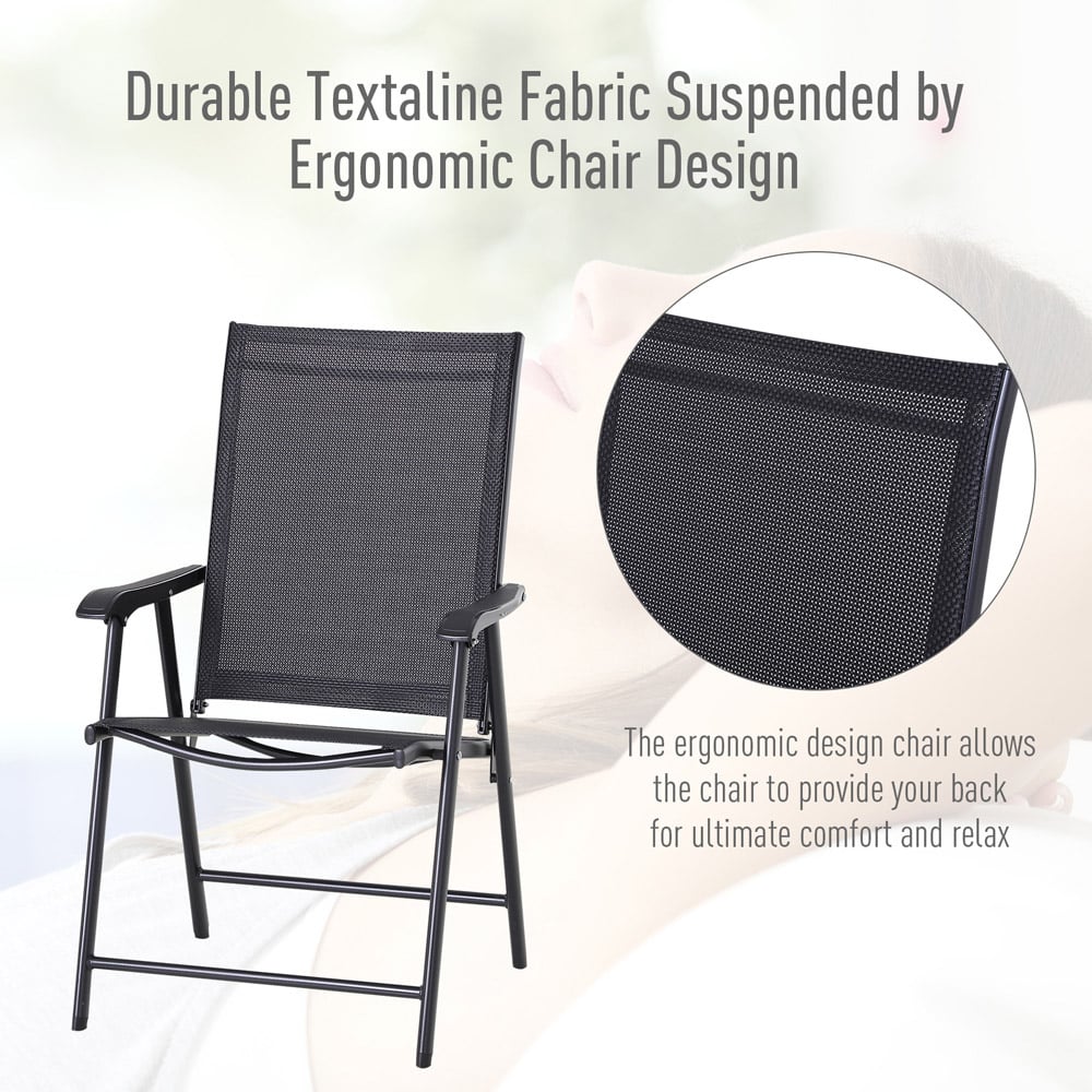 Outsunny Set of 4 Black Metal Slatted Patio Dining Chair