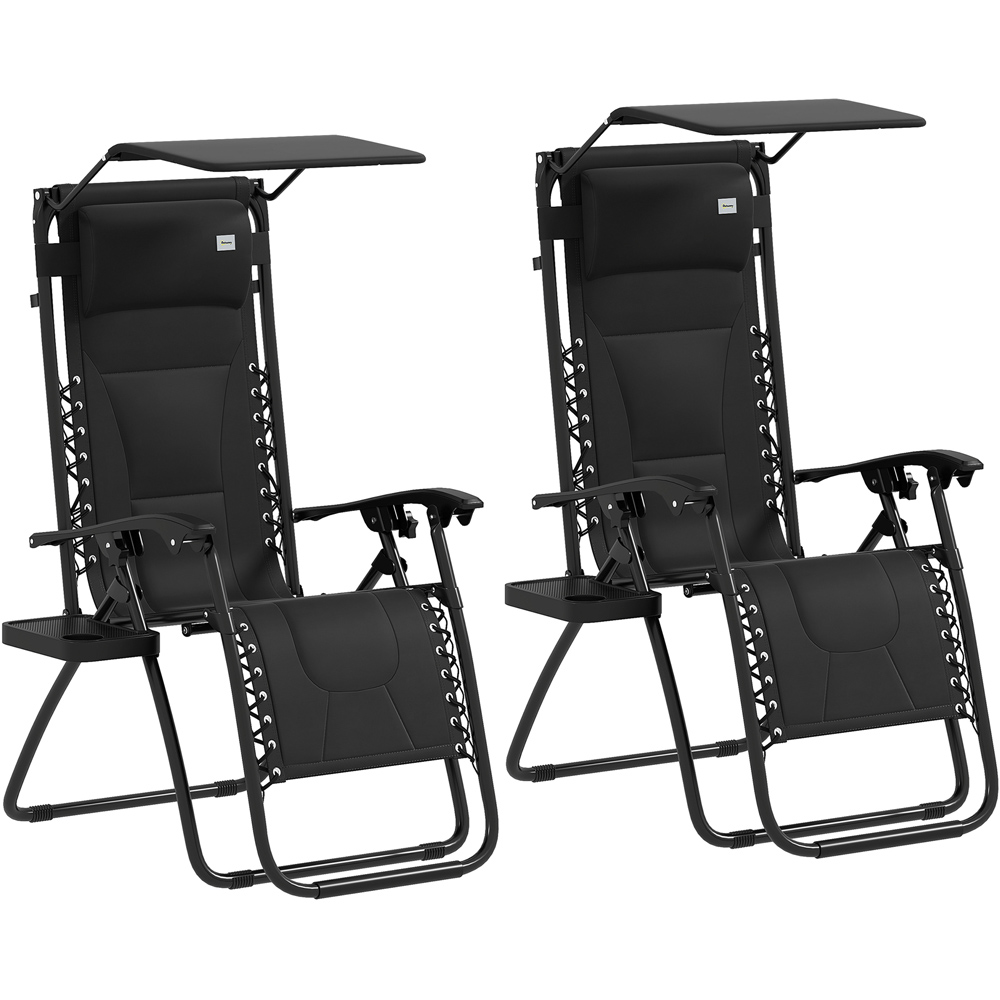 Outsunny Set of 2 Black Zero Gravity Foldable Lounger Chair