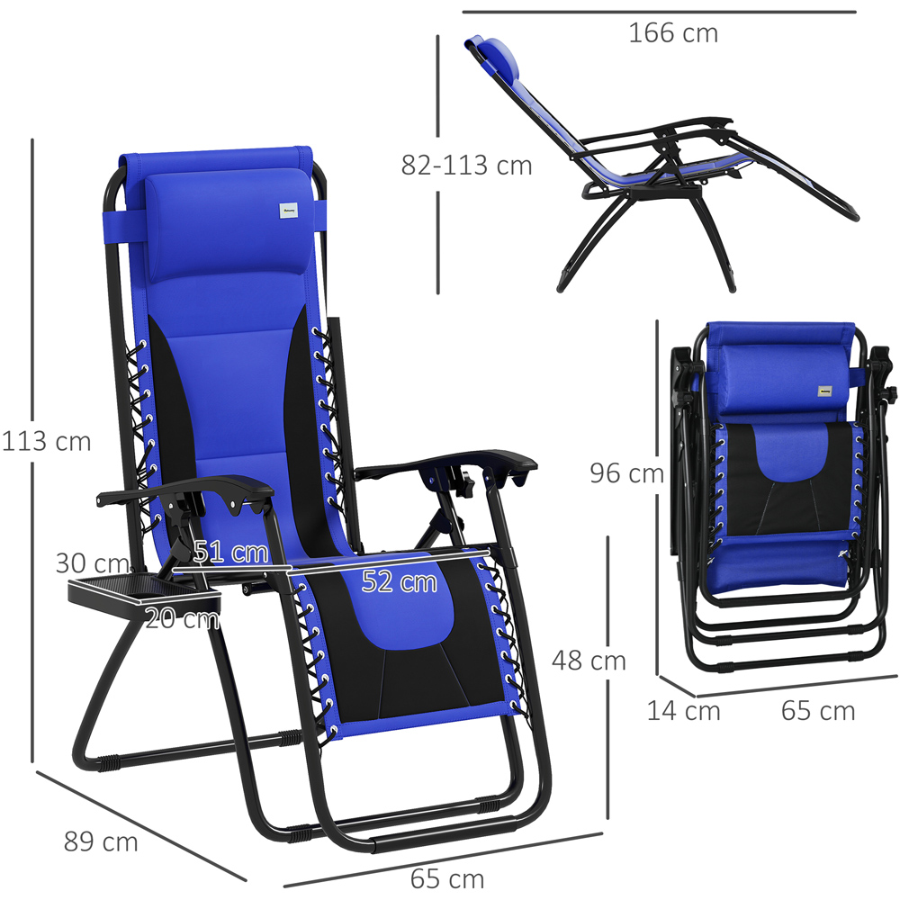 Outsunny Set of 2 Blue Zero Gravity Recliner Lounger with Cup Holder