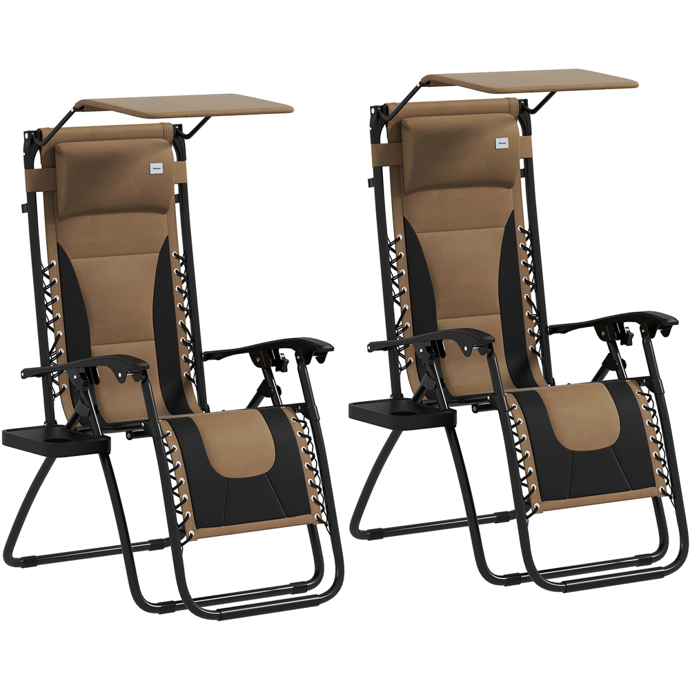 Outsunny Set of 2 Brown Zero Gravity Foldable Lounger Chair