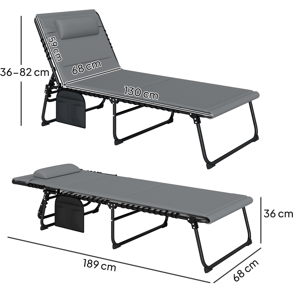 Outsunny Set of 2 Charcoal Grey Folding Sun Loungers Set