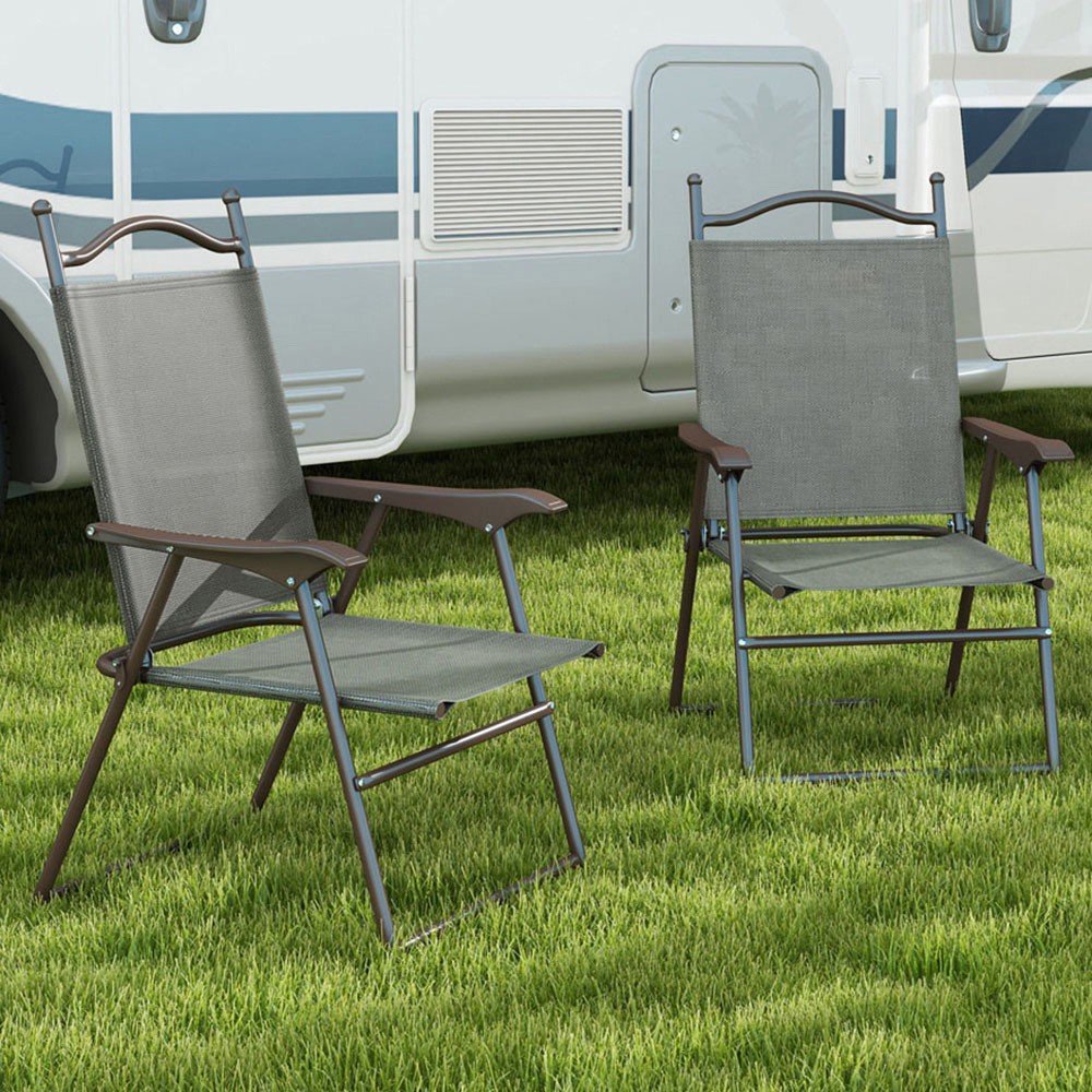 Enjoy ultimate relaxation outdoors with this pair of Outsunny folding camping chairs. Their portable design ensures effortless portability, perfect for any adventure. The robust powder-coated steel frame provides excellent support and durability, while the tall back and armrests offer exceptional comfort. Breathable mesh fabric seats add to the overall comfort. Conveniently foldable for easy storage and transport. Set of two.