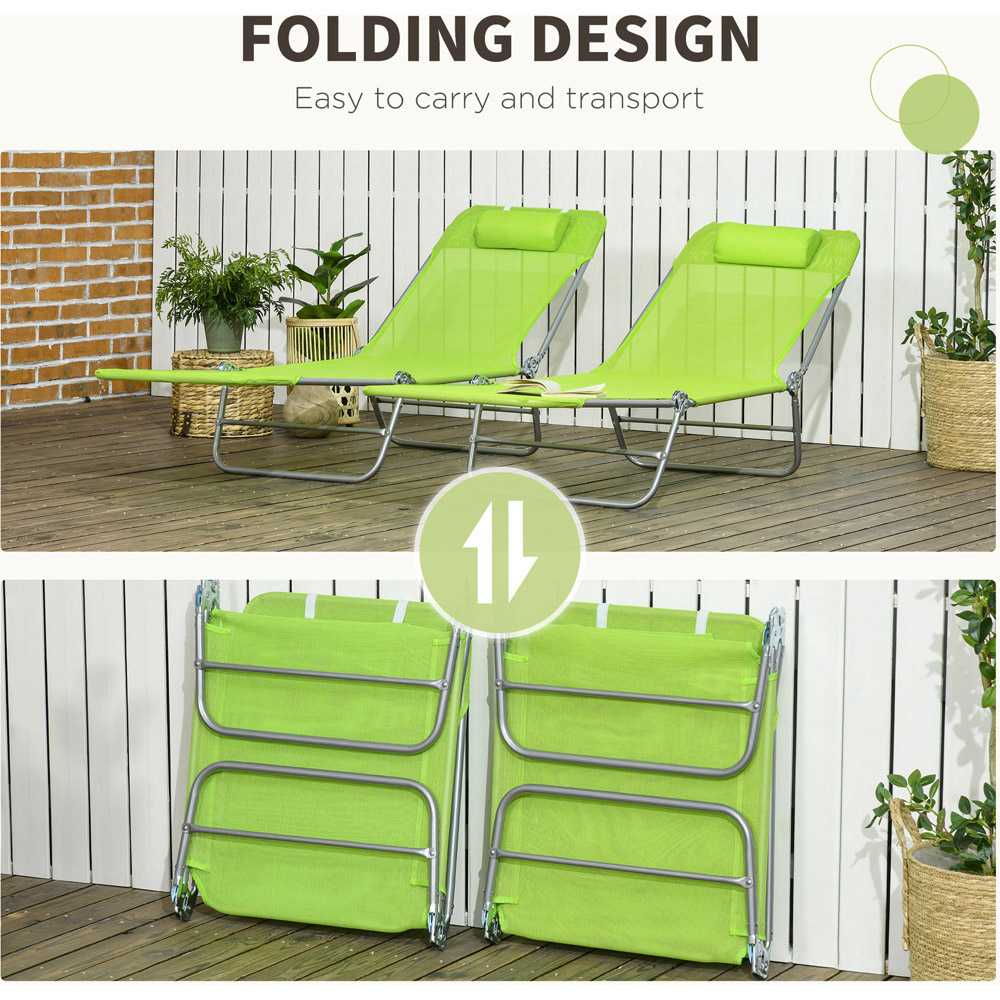 Outsunny Set of 2 Green Reclining Foldable Sun Lounger
