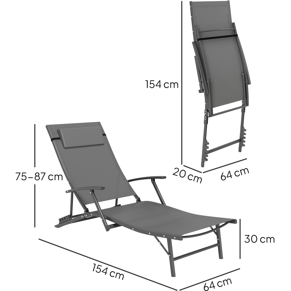 Unwind in the sunshine with these stylish folding loungers. Boasting a four-position adjustable backrest and breathable, quick-drying Texteline mesh, they're perfect for your garden or patio. Lightweight and foldable for easy storage, they also include a comfy removable head pillow for ultimate relaxation. Blissful comfort awaits.