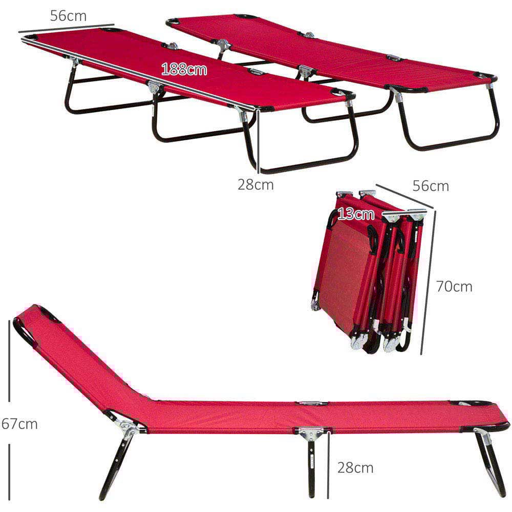 Outsunny Set of 2 Wine Red Folding Sun Lounger Set with Adjustable Backrest