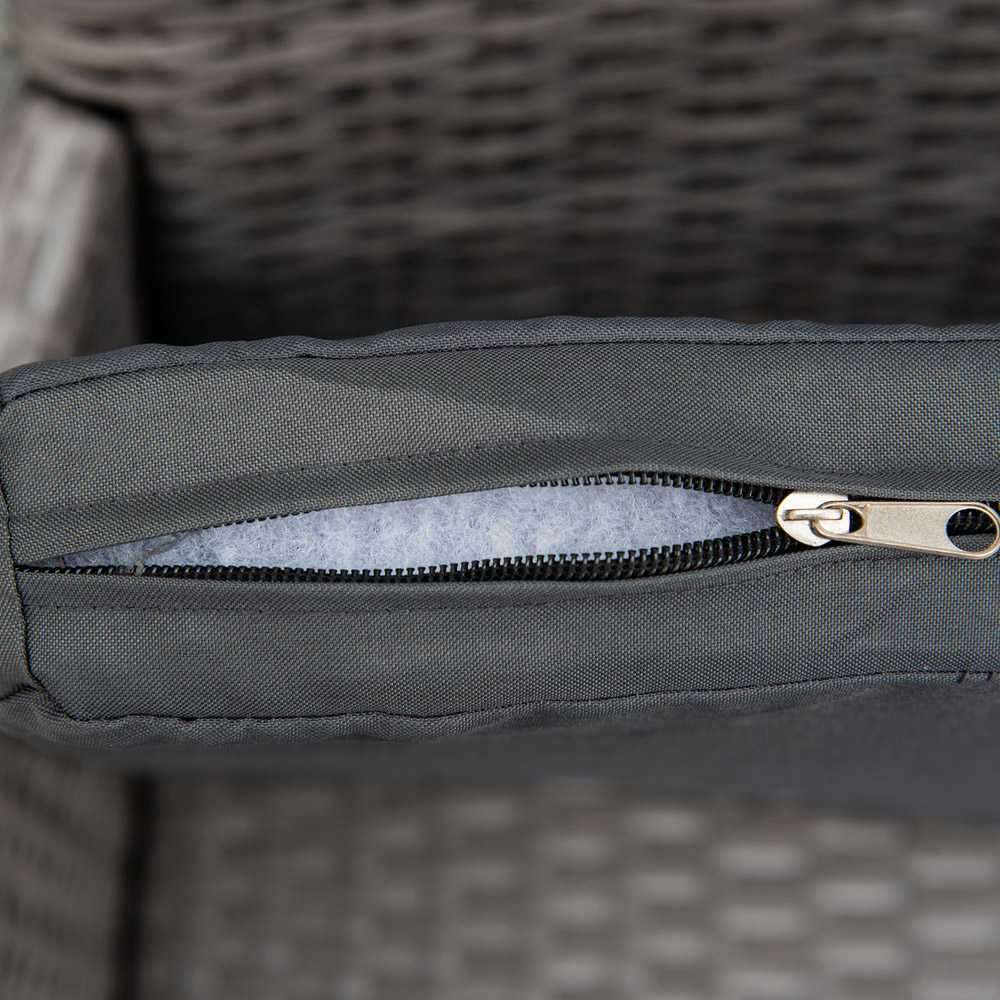 Transform your outdoors with the Outsunny Set of 4 Grey Rattan Garden Chair. These chairs are the perfect addition to any outdoor space, whether you use them alone or match them with other furniture. The chairs boast a galvanised metal frame, providing a sturdy and supportive structure, which is wrapped in plastic rattan for unbeatable durability and style. The chairs come with tall backs and armrests, ensuring maximum comfort and support. Each chair is equipped with a cushion to provide you with the ultimate relaxation experience. This stylish four-piece set is perfect for starting the season the right way. The metal frames and rattan outers provide a garden-ready look and make for a great addition to gardens, patio areas, small house fronts, and other outdoor areas. The chair cushions are zip-fastened, allowing for easy removal and washing. Use these chairs remotely or pair them with other small balcony furniture to relax outdoors with the company. Don't hesitate to get your hands on this incredible four-piece set today. Protect your garden furniture with our durable and waterproof covers. Explore our wide range of heavy-duty Garden Furniture covers to find the perfect fit for your needs.