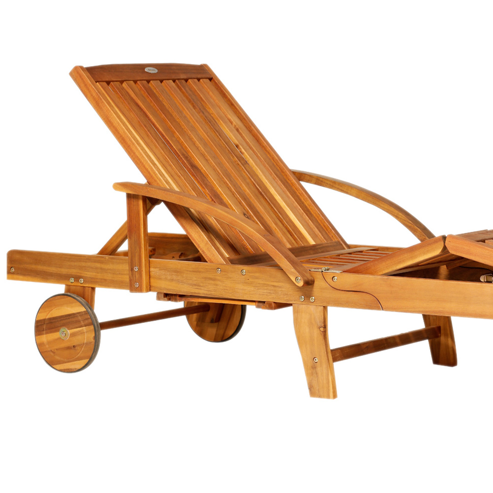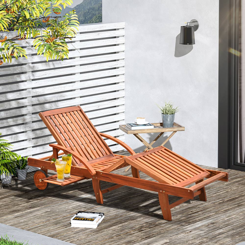 Quite simply put, there’s no better way to enjoy the sun at its best than with this lounger from Outsunny. Using sustainably source acacia wood for durability and resilience against weather damage, it is crafted into a classic lounger design, with both the lower half and back adjusting to different positions for you to be in control of how you lie or sit, with a pull-out side table for a convenient place to keep anything you need near. The back can be set to four different levels, leg area to three, allowing you to be in complete control of how to sit or lie. Slatted all over to prevent water build-up to help prevent damage to the wood, this piece is finished with two wheels on the front for it to move around easily, with the frame fully folding into itself for easy lifting and storage. Simply fold out for hours of relaxation. Protect your garden furniture with our durable and waterproof covers. Explore our wide range of heavy-duty Garden Furniture covers to find the perfect fit for your needs.