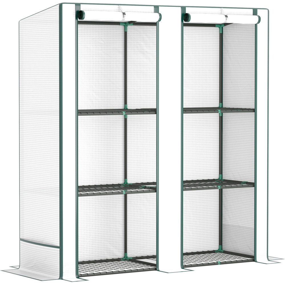 Outsunny White and Green 3 Shelf PE Cover Lean To Mini Greenhouse 4.7 x 1.5ft