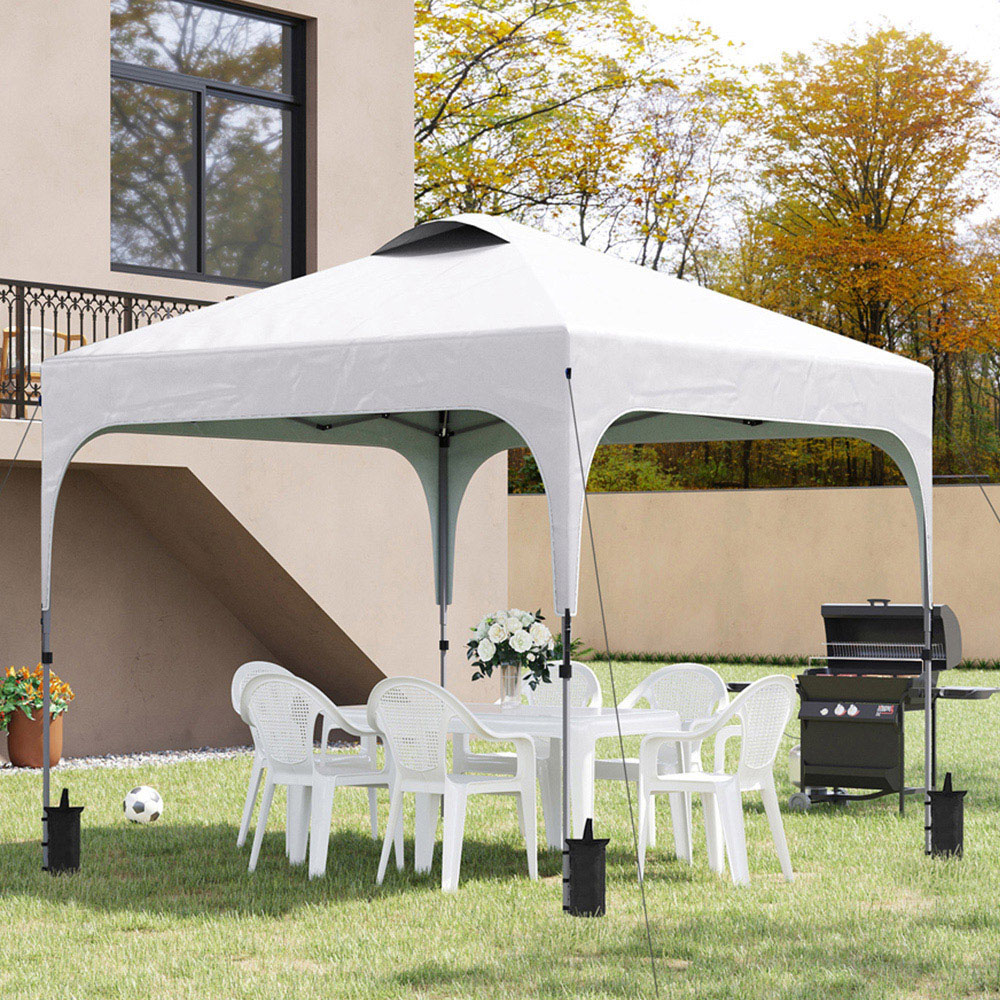 Outsunny White Pop Up Gazebo with Wheeled Carry Bag and 4 Weight Bag 3 x 3m