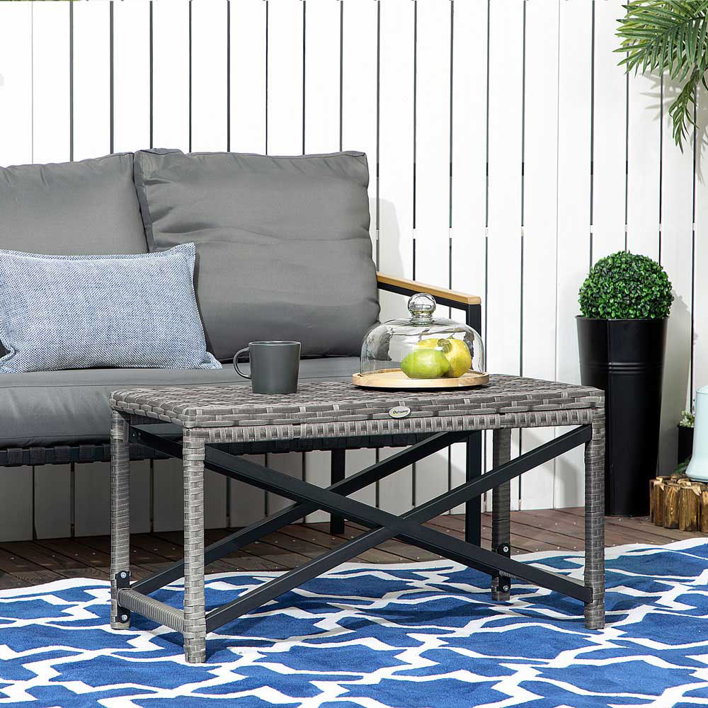 Enjoy a cup of coffee outdoors with Outsunny Grey Wicker Coffee Table. Made from powder-coated metal for a strong structure - it also comes with an 'X' bar for extra support. The table top offers plenty of handy holding room. Featuring footpads to protect the floor - the maximum load that it can pick up is 30kg. Specifications: Color: black and mixed grey, Material: Galvanized Steel, PE Rattan, Overall Dimensions: 80L x 40W x 43Hcm. Weight Capacity: 30kg. Protect your garden furniture with our durable and waterproof covers. Explore our wide range of heavy-duty Garden Furniture covers to find the perfect fit for your needs.
