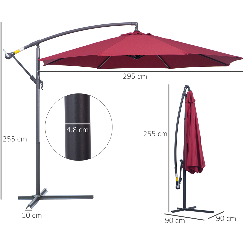 Outsunny Wine Red Crank Handle Cantilever Parasol with Cross Base 3m