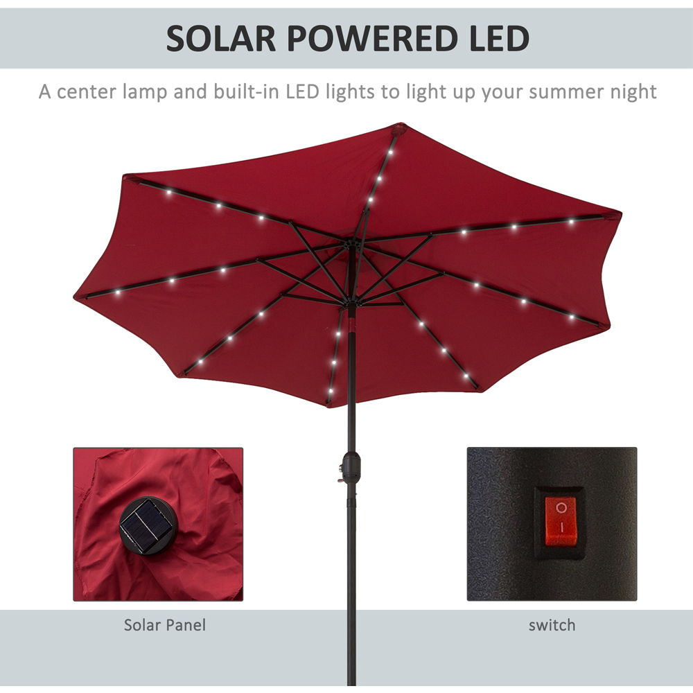 Outsunny Wine Red Solar LED Crank and Tilt Garden Parasol 2.7m