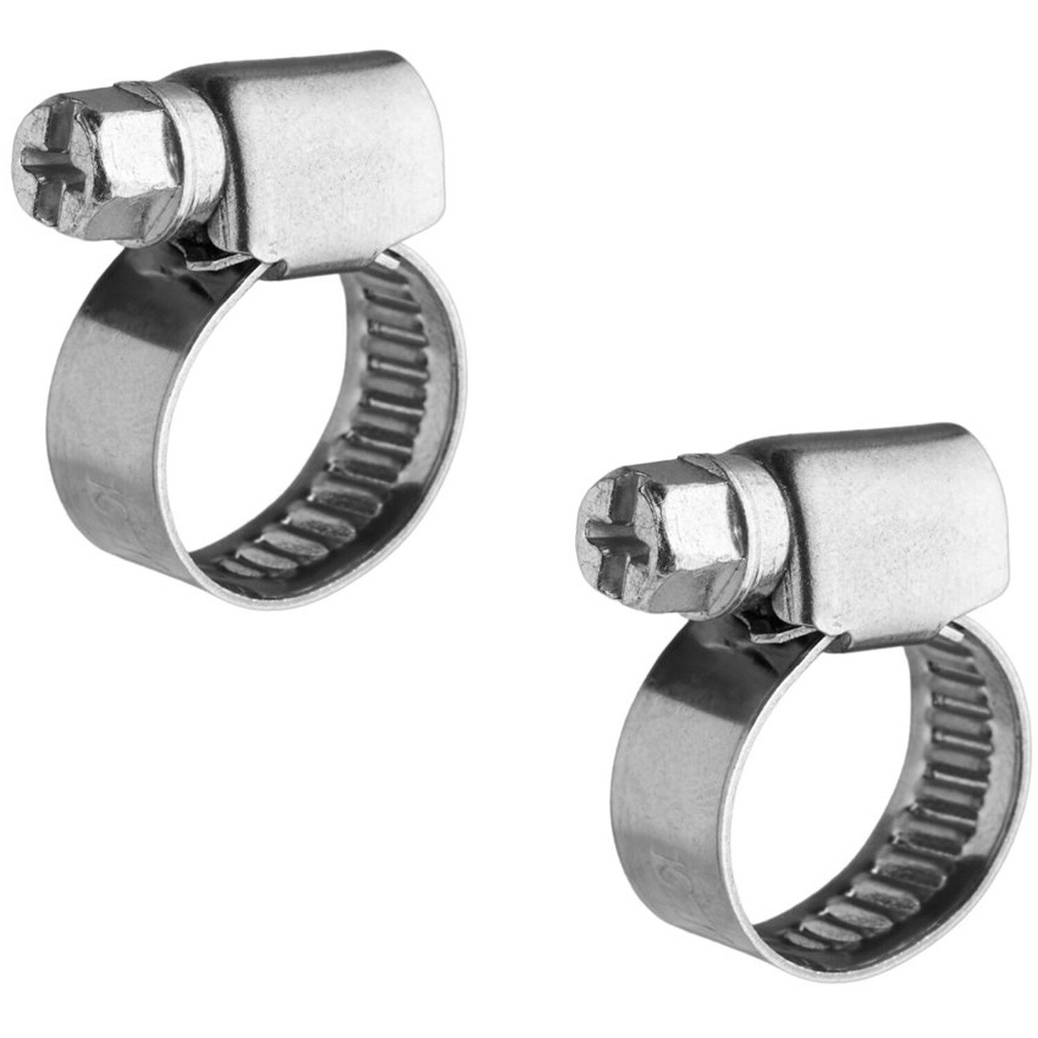 Secure your hoses effortlessly with these galvanised iron hose clips. This pack contains two durable clips, providing a reliable and secure connexion without the need for additional fixings. Ideal for creating a tight seal between hose and fitting.