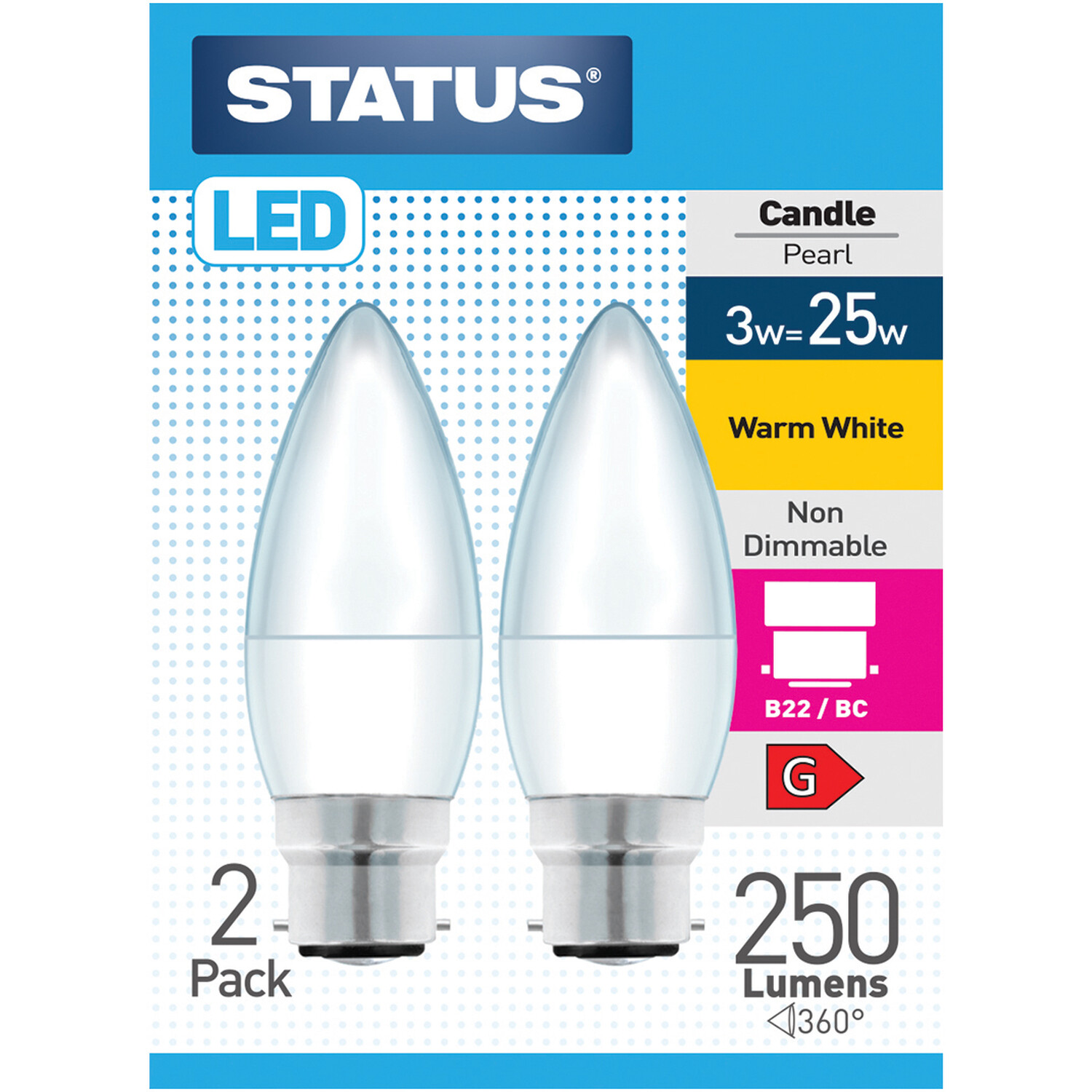 Illuminate your home with effortless style using this pair of Status 3W Pearl Candle Lightbulbs. The attractive candle design adds a touch of charm to any room, making them a versatile lighting solution. Perfect for keeping as replacements, ensuring you're always prepared for when a bulb burns out.