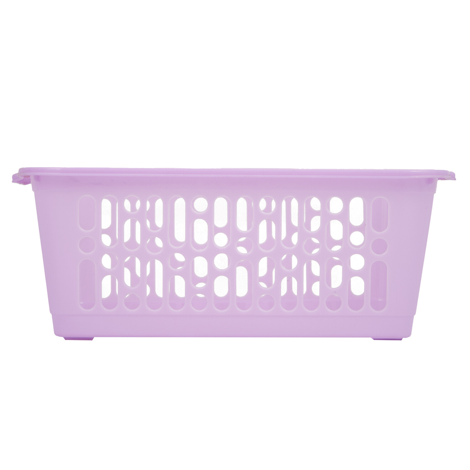 Four large-capacity storage baskets in multiple colours. Ideal for home and office shelf and cupboard organisation.