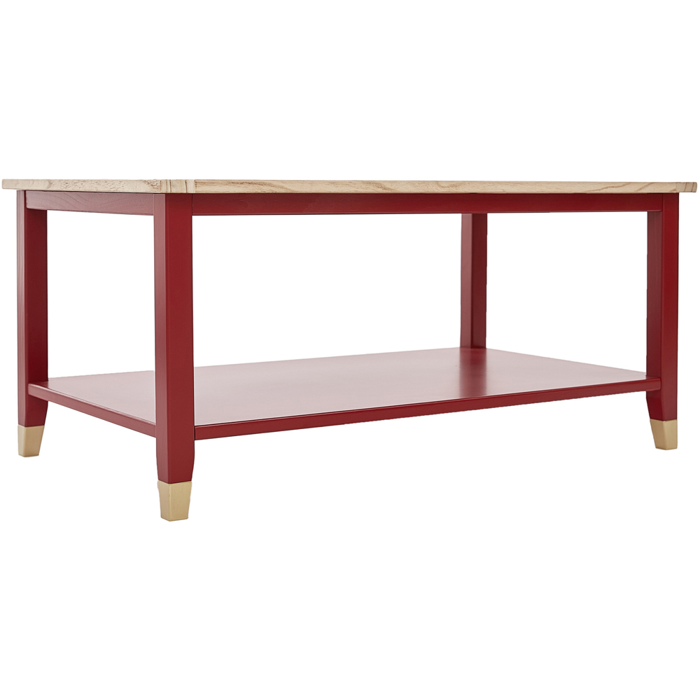 Introduce a touch of elegance to your living space with the Palazzi Red Natural Coffee Table. Boasting a refined design with eye-catching gold accents across multiple finishes, this table offers a distinctive aesthetic that complements any interior décor. Constructed from robust solid wood MDF, it ensures lasting stability. A generous base shelf partners with a natural wooden tabletop, elevated by gold metal feet, providing both versatility and ample room for your everyday necessities or decorative items. Finished with a smooth matt surface, this coffee table is the perfect choice for adding an elegant touch to your home. Dimensions: H45 x W100 x D56cm.