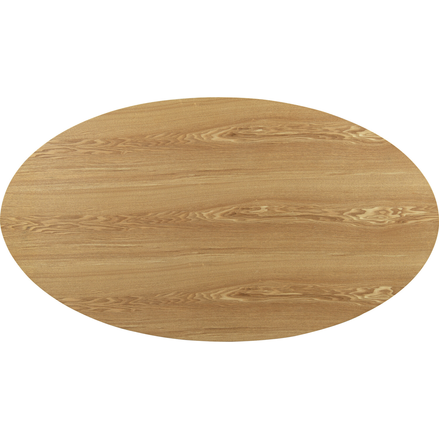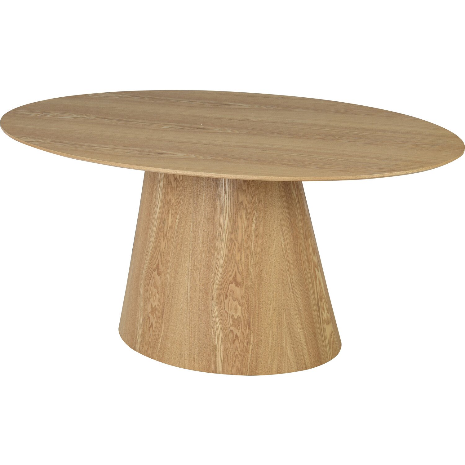 The Palma Oval Table: a stylish dining solution for the modern home. Its light and airy design, featuring a slim tabletop and substantial base, complements a variety of interiors. The beautiful wood-effect finish creates a sophisticated look reminiscent of solid wood, offering both style and practicality. Perfect for family meals, work, or leisure, this table effortlessly blends chic design with everyday functionality.
