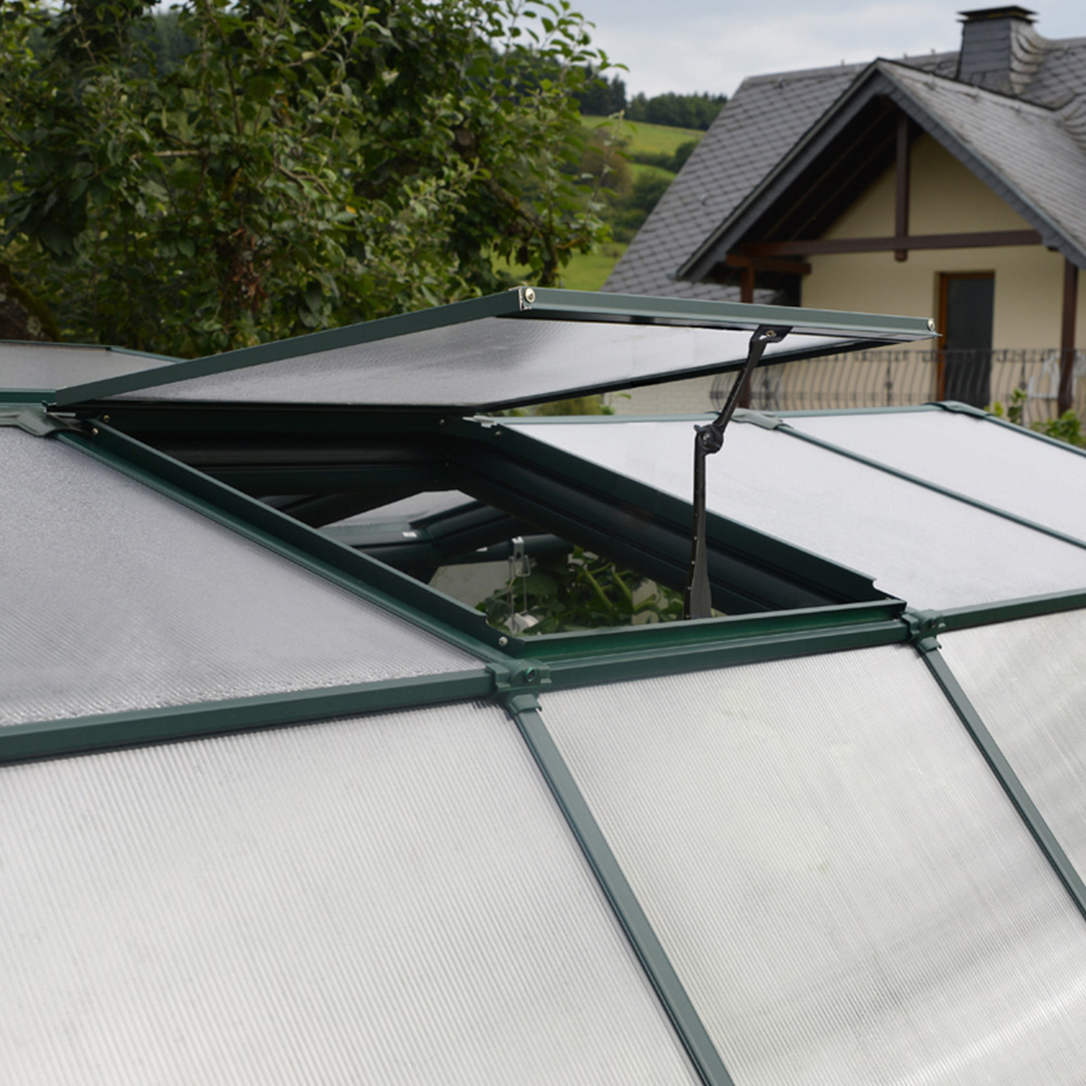 Grow your favourite plants in a controlled manner with this Palram Canopia EcoGrow Greenhouse. It's designed to offer superior strength, safety, light diffusion and great heat insulation with 4mm twin-wall polycarbonate roof panels and 6mm twin-wall side panels. The weatherproof, durable resin frame features simplified installation with the pin-and-lock assembly system, and the panels are simple to slide into place. Complete with a hinged door, a latch and a roof vent, it provides excellent ventilation, it'll be an economical choice for greenhouse growers. Size: 6 x 12ft.