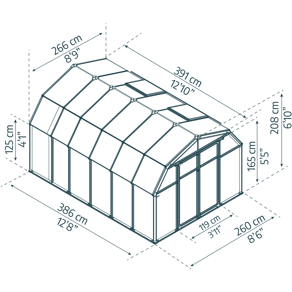 Meet all your gardening needs with the Palram Canopia Hobby Gardener Greenhouse 8 x 12ft. This attractive and durable greenhouse is a breeze to assemble, featuring a sturdy frame made from UV-protected resin and secured with pin and lock resin connectors. The virtually unbreakable twin-wall polycarbonate panels offer exceptional strength, safety, light diffusion, and heat insulation.