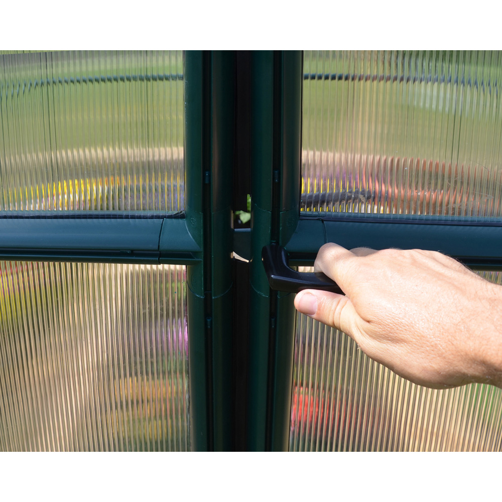 Meet all your gardening needs with the Palram Canopia Hobby Gardener Greenhouse 8 x 16ft. This attractive and durable greenhouse is a breeze to assemble, featuring a sturdy frame made from UV-protected resin and secured with pin and lock resin connectors. The virtually unbreakable twin-wall polycarbonate panels offer exceptional strength, safety, light diffusion, and heat insulation.