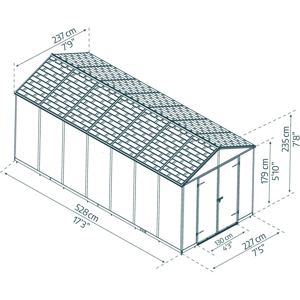 Palram Canopia Rubicon Dark Grey Garden Shed 8 x 17ft