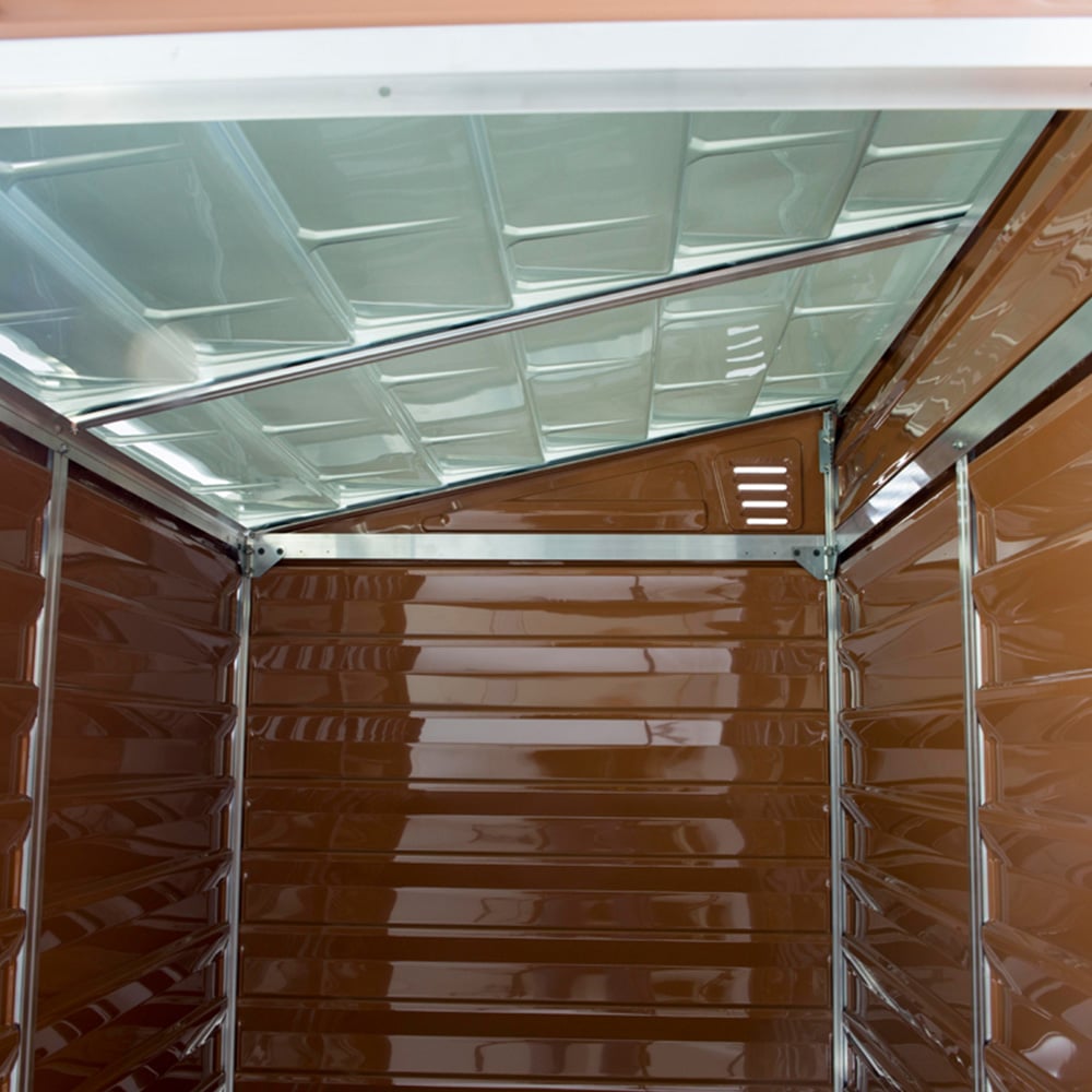 Unleash the power of outdoor organisation with the Palram Canopia Skylight 4 x 6ft Amber Shed Pent. This durable storage solution is crafted from Canopia's virtually unbreakable polycarbonate. It features a reinforced aluminium frame, ensuring years of maintenance-free protection for your belongings. While the polycarbonate panels may appear flexible during assembly, they transform into a sturdy, reliable structure that safeguards your outdoor life.