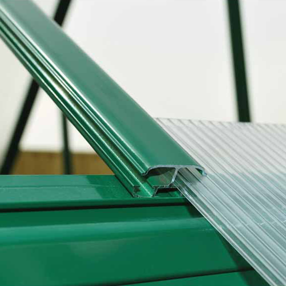 Grow beautiful plants in the Palram Mythos 6 x 8ft Greenhouse. This elegant greenhouse features virtually unbreakable twin-wall polycarbonate panels and a heavy-duty green powder-coated aluminium frame for lasting durability and rust resistance. The design helps maintain even temperatures and diffuses sunlight, creating the ideal environment for sensitive plants.