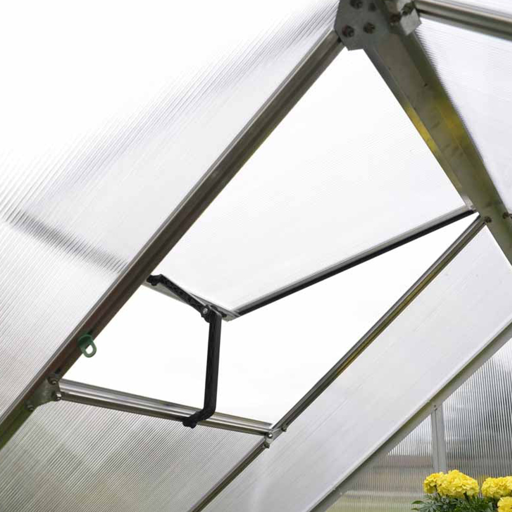 Grow more, worry less with the Mythos Greenhouse. This elegant and practical greenhouse, perfect for smaller spaces, features virtually unbreakable twin-wall polycarbonate panels and a heavy-duty, rust-resistant aluminium frame for lasting durability. Shielding your plants from harsh weather, it allows for extended growing seasons. A vent window and built-in guttering enhance functionality, while the 5-year warranty provides peace of mind. Dimensions: 6 x 4ft.