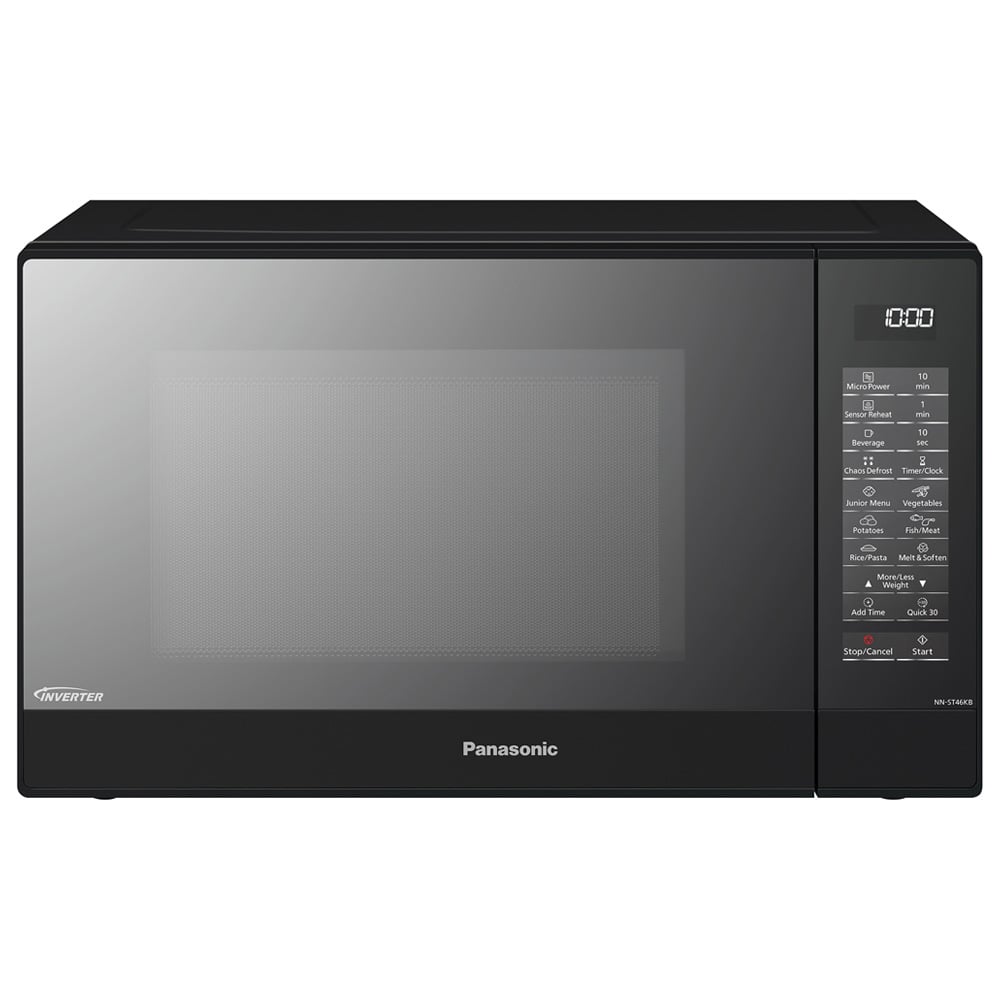 Effortlessly elevate your cooking with this sleek black Panasonic 32L Inverter Microwave. Its impressive 1000W power and seven power levels offer unparalleled control, making it perfect for the modern home. The innovative sensor technology intelligently adjusts cooking time and power based on steam detection, guaranteeing consistently delicious results. Navigate its functions with ease via the intuitive LED touch control screen and explore 25 pre-programmemed options for everyday convenience. With a spacious 32-litre capacity, this microwave (model NN-ST46KBBPQ) is a true kitchen essential.