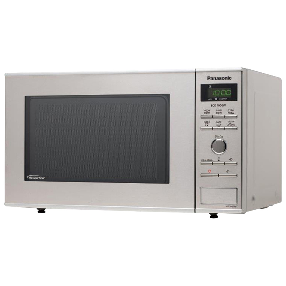 Effortlessly create delicious meals for the whole family with this Panasonic Silver 23L Inverter Solo Microwave. Boasting 1000 watts of power and advanced inverter technology, you',ll enjoy consistent cooking energy across all power settings – no more uneven heating or unpredictable results. Ten handy one-touch programmemes make cooking a breeze, while the spacious 23-litre capacity and 285mm turntable are perfect for larger dishes. With six power levels to choose from, this microwave offers the versatility you need to master any recipe. Model: NN-SD27HSBPQ.