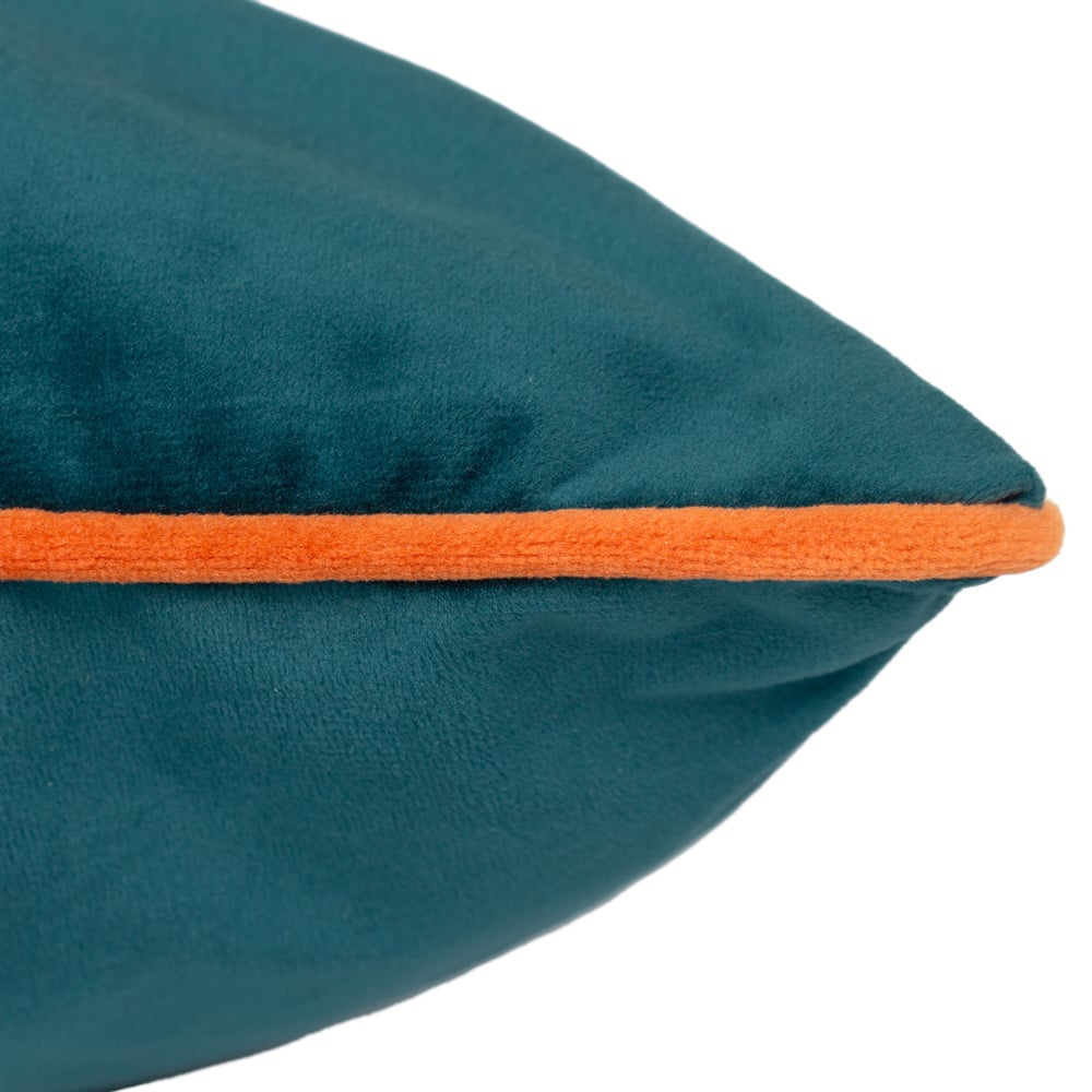 Elevate your living space with the Paoletti Meridian Teal Clementine Velvet Cushion. This generously sized cushion, crafted from sumptuously soft, velvet-feel fabric, effortlessly complements the Meridian range. Its understated design features a plain front and reverse, accented by a contrasting clementine piped edge. The discreet zip closure ensures easy filling and secure closure.
