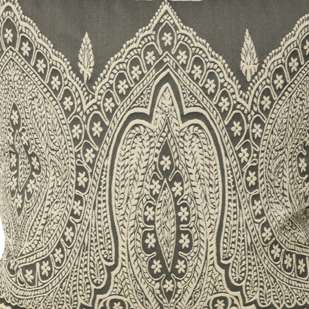 Add a touch of bohemian charm to your living space with this paisley-printed cushion. Its striking grey paisley pattern offers a contemporary twist on a classic design, complementing a variety of interior styles and furniture. The knife-edged finish and hidden zip add a touch of sophistication, while the luxurious polycotton fabric ensures both comfort and durability. Easy to care for, this cushion cover is fully machine washable at 40 degrees and should be ironed on a cool setting for a crisp finish.