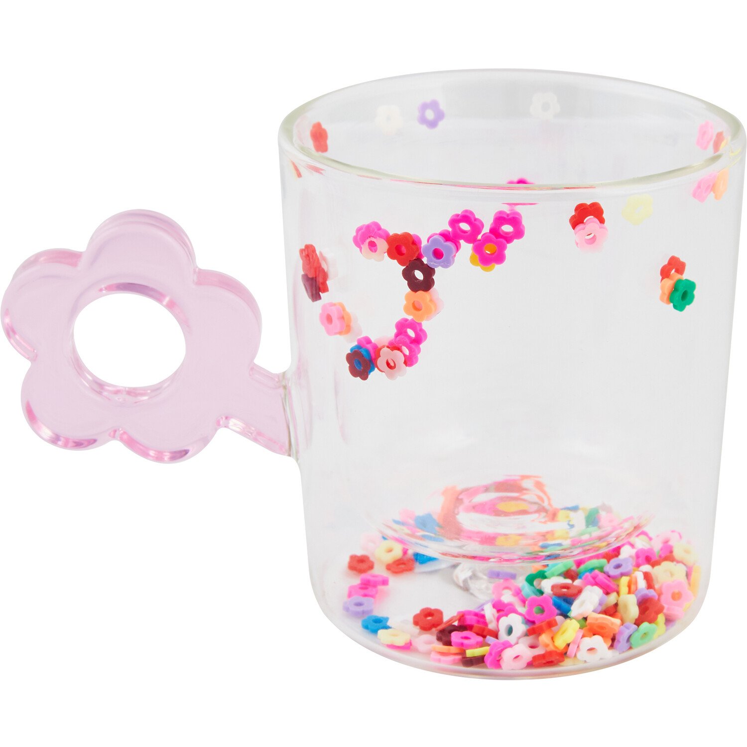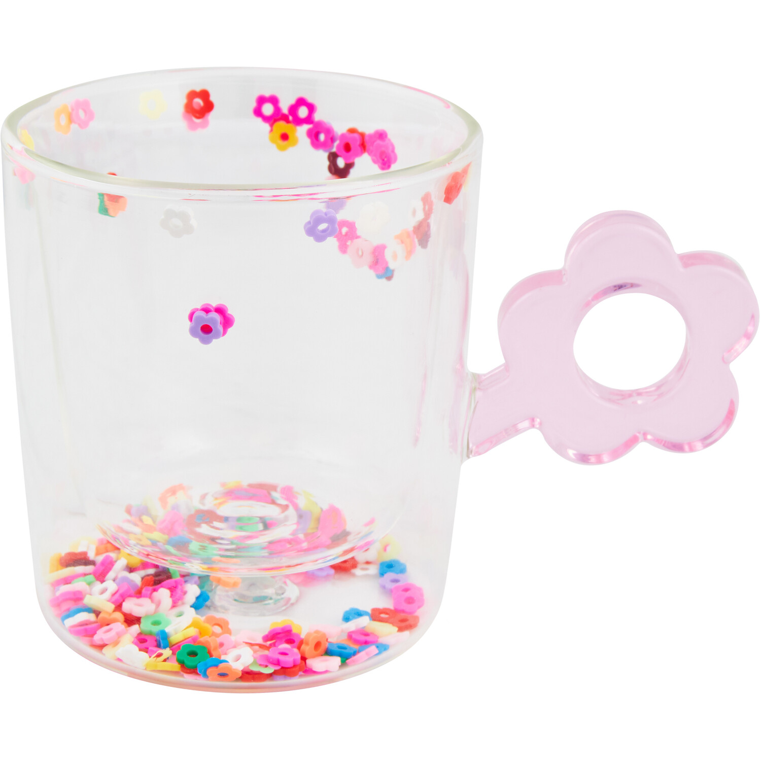 Pink Flower Handle Glass Double Wall Mug