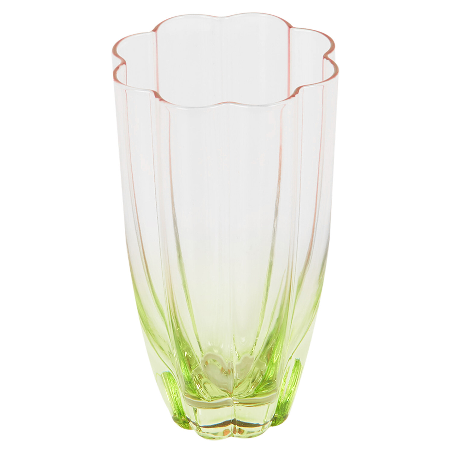 Bring a touch of elegance to your table setting with the Flower Hiball Glass. This piece features an intricate design, with a graceful form and floral detailing highlighted by delicate pink and green shades. Ready to enrich any contemporary dining experience, this glass enhances dinners with an effortless charm.