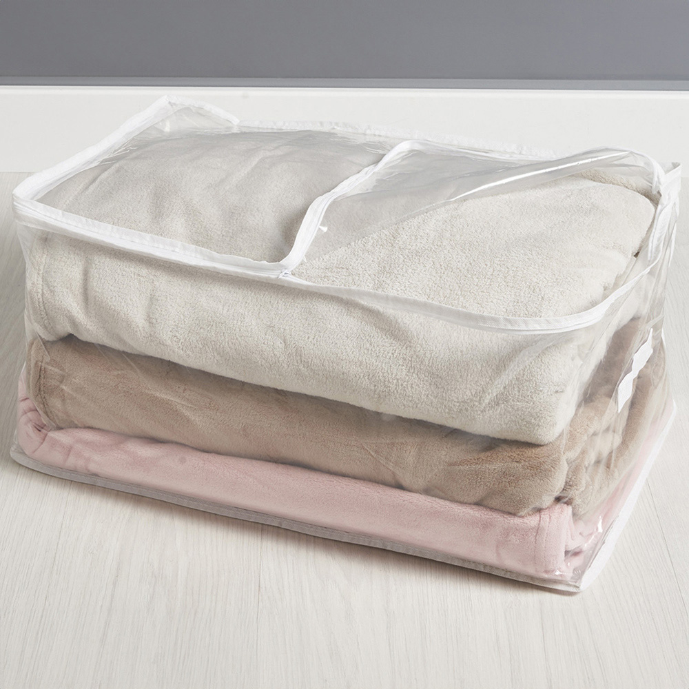 Keep your home clutter-free with this underbed storage bag. Perfect for bedding, towels, and blankets, it offers a simple solution for decluttering and organising. Made from durable, flexible PVC plastic, its clear design lets you easily see contents without unpacking everything. Folds flat for space-saving storage when not in use.