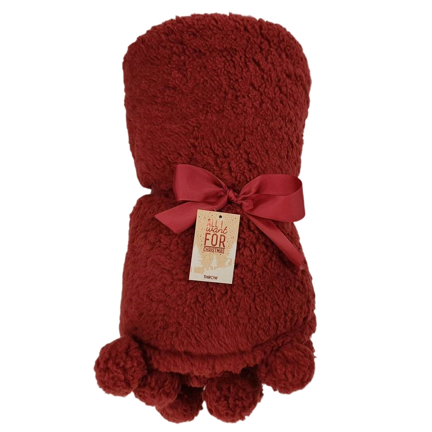 Pom Pom Sherpa Throw - Red