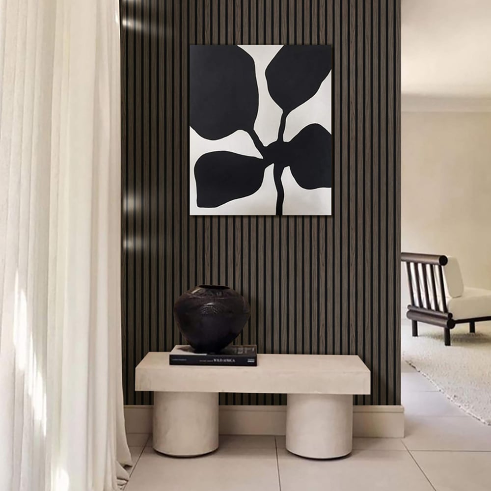 Transform your interior spaces with these stunning acoustic slat wood panels. Crafted from real wood veneer and fire-resistant, environmentally friendly materials, these panels offer both aesthetic appeal and practical sound absorption. Their eye-catching design adds warmth and natural beauty to homes and commercial settings alike, ideal for creating feature walls or enhancing existing décor. Simple to install using various methods, each panel measures 2400mm x 600mm x 21mm, covering 1.44m². Perfect for media walls, ceilings, bedrooms, living rooms, and more. These versatile panels bring style and acoustic benefits to any room. Not suitable for high-moisture areas.