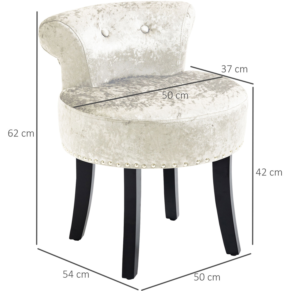 Crafted with style and comfort in mind, this Portland Beige Vanity Seat Dressing Table Stool will fit right into your home, whilst its compact size is great for smaller spaces. Upholstered in crushed velvet-feel fabric with chic buttons and sitting on solid rubberwood legs, this makeup chair is optimal for everyday use - its soft touch will add warmth and cosiness to your bedroom or dressing room, and legs will provide support. Pop it under a dressing table for when it's time to be glamorous - or as a lounge seat.