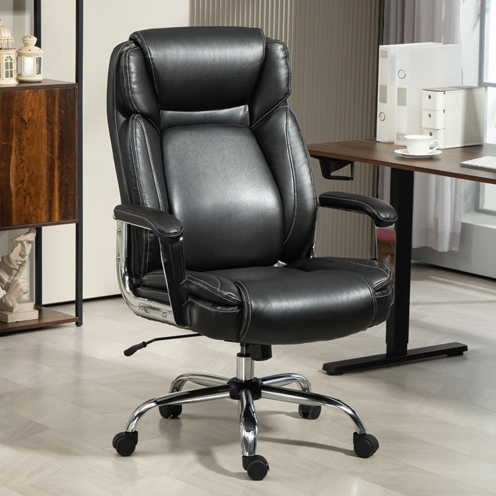 Bring comfort to your workspace with Portland Black Faux Leather Adjustable Height Office Chair. Crafted from deluxe black faux leather, this home office chair features high-density foam cushioning for all-day support and an adjustable seat height for personalized comfort. Built on a sturdy metal frame supporting up to 227 kg, it’s perfect for any office, study, or desk setup, with a smooth swivel base for effortless mobility.