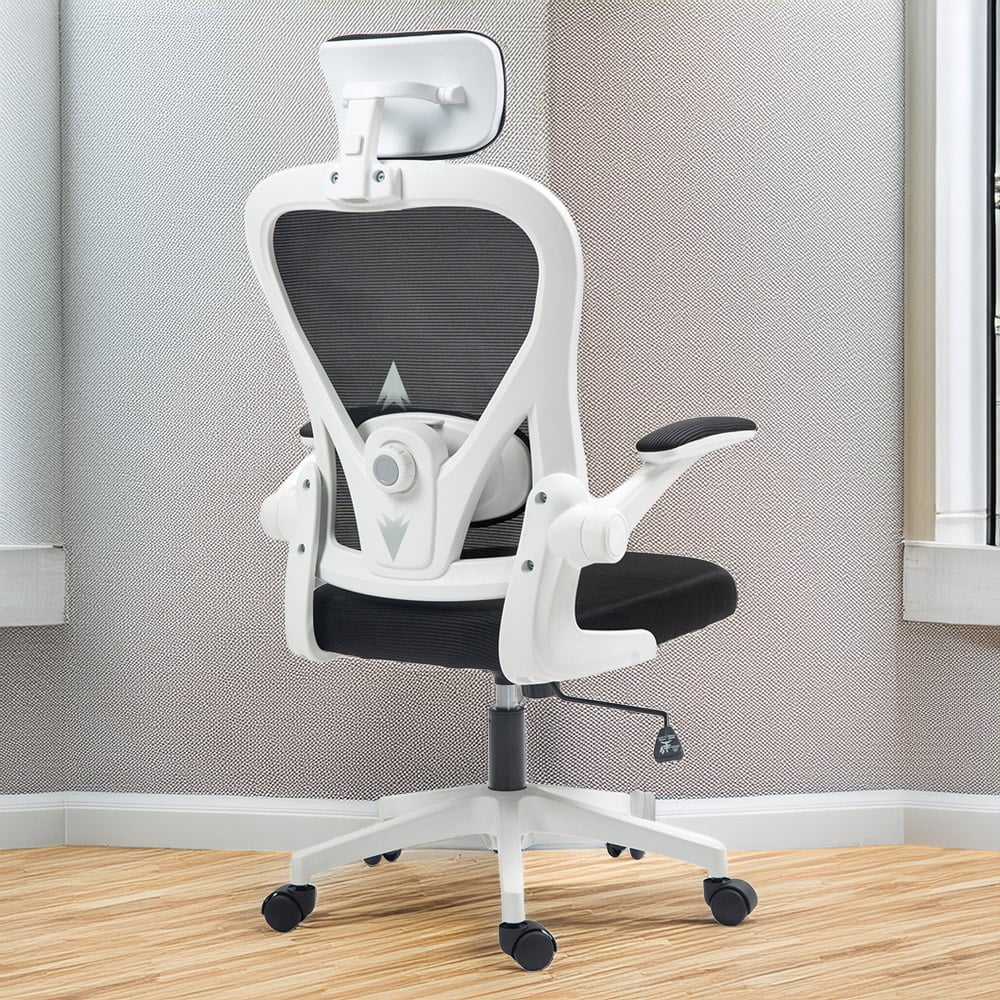 Upgrade your work setup with the Portland Black Mesh Ergonomic Lumbar Support Office Chair with Headrest. Designed with your daily routine in mind, this chair makes long hours at the desk feel more manageable. Whether you are working in your home office or bedroom, it’s a practical and stylish choice that supports both comfort and productivity. The adjustable headrest can move up or down and rotate to fit your needs, while the lumber support shifts forward, backwards, up, or down, so you can fine-tune it to match your posture. It’s built to support you, not the other way around. Wrapped in breathable mesh and padded with high-density foam, the seat stays cool and comfortable, even during long work sessions. Plus, the flip-up armrests give you the flexibility to tuck the chair neatly under the desk or switch positions easily while you work.